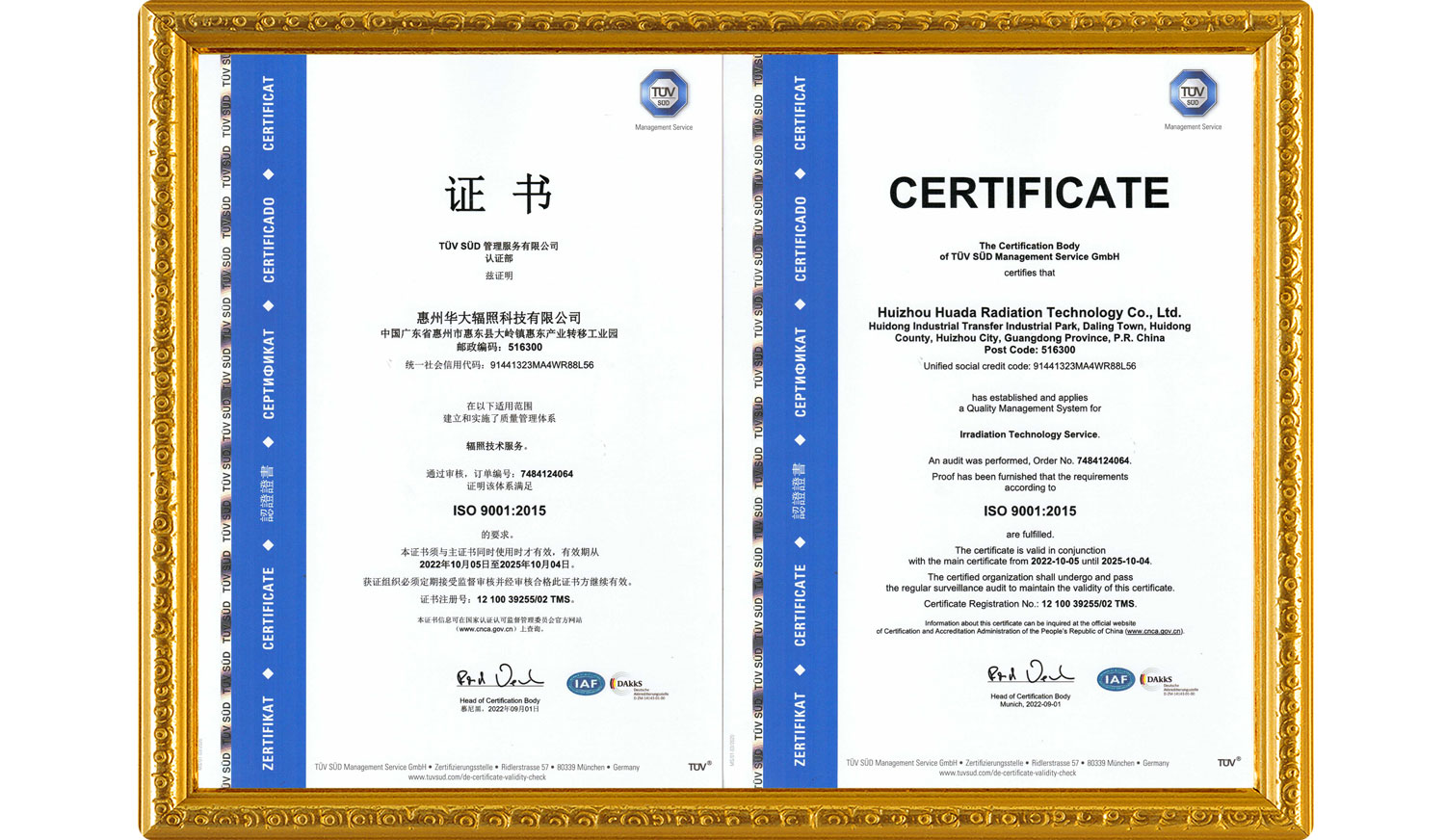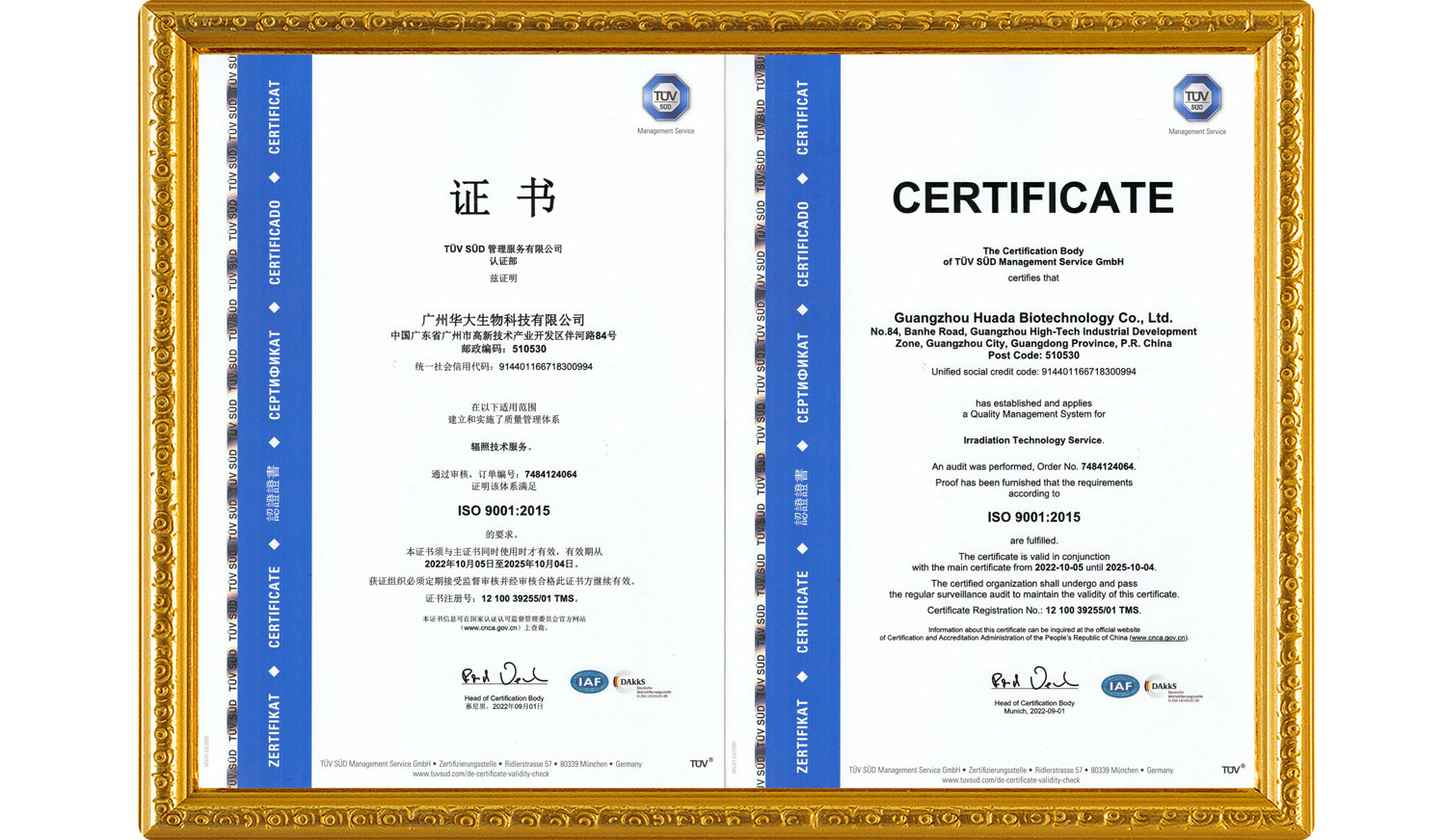 公司始終堅持質量上乘、高效快捷、安全可靠的服務理念,嚴格按照國際質量體系規范運作,現在運行的是德國TüV SüD管理服務有限公司的ISO9001:2015、ISO13485:2016及ISO11137-1:2015質量管理體系,并于2013年在美國FDA進行了注冊,注冊號為:3010187826。